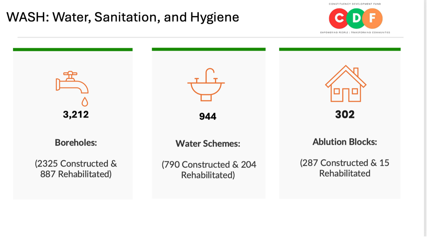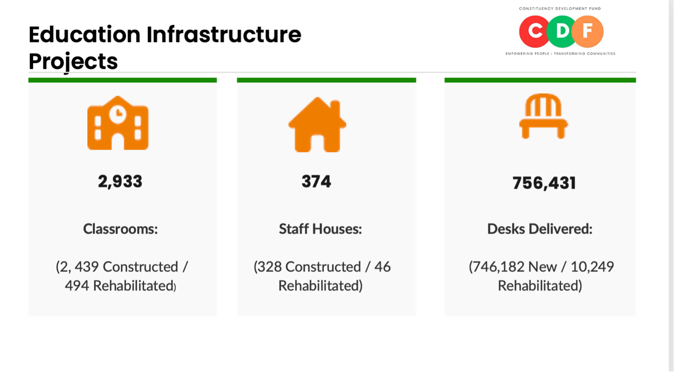 Education infrastructure has seen transformative investment. The construction of new classrooms and the rehabilitation of existing ones directly tackle overcrowding and create welcoming learning environments. Again, the projects are not just concentrated in urban areas; CDF ensures every constituency benefits. CDF has also helped to support the Free Education Policy, which has seen 130,627 learners going back to school.